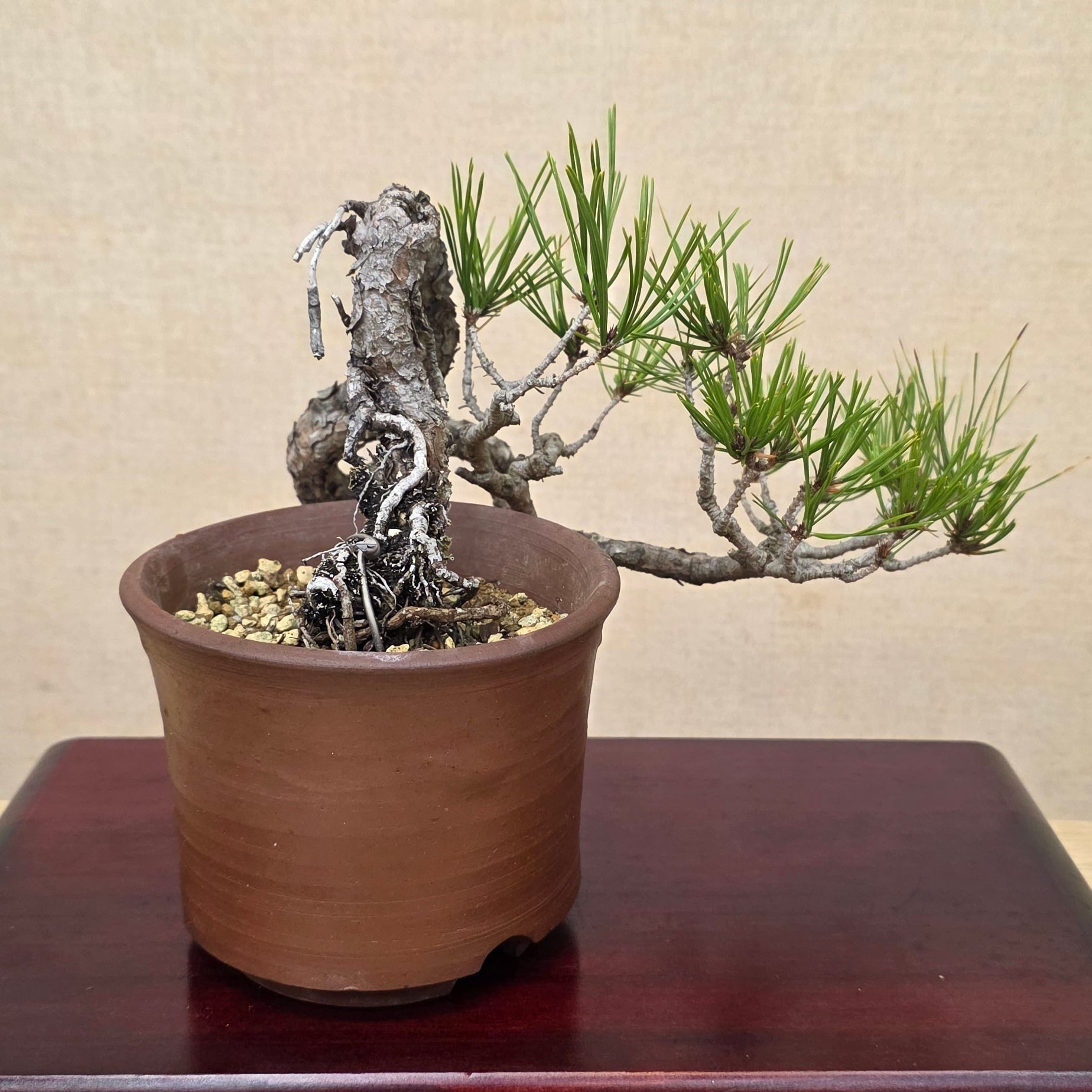 赤松ならではのやわらかく自然な雰囲気が魅力の小品盆栽です。